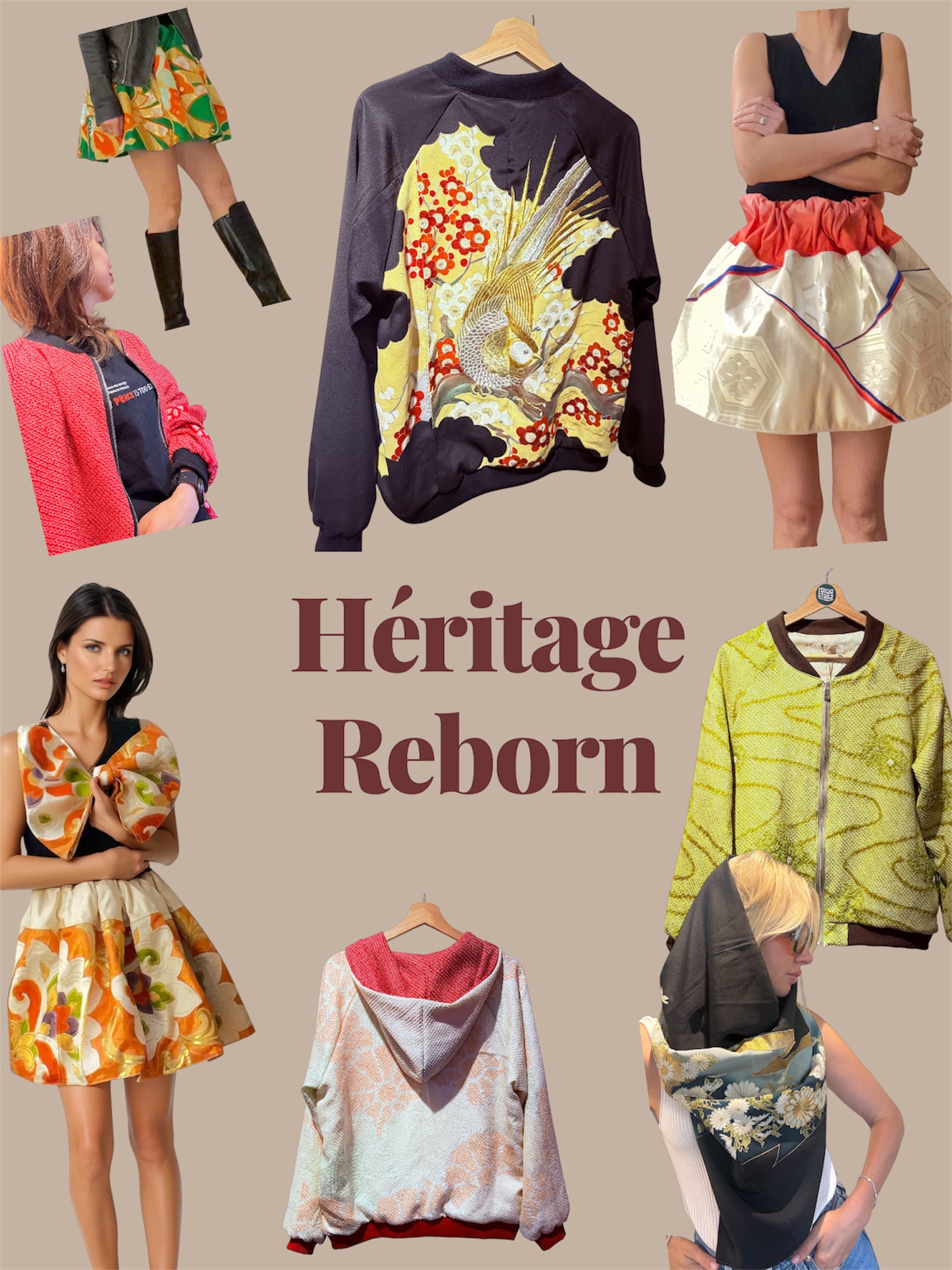 Nous transformons des kimonos et obi issus de notre propre collection en pièces contemporaines, durables et produites en séries limitées.