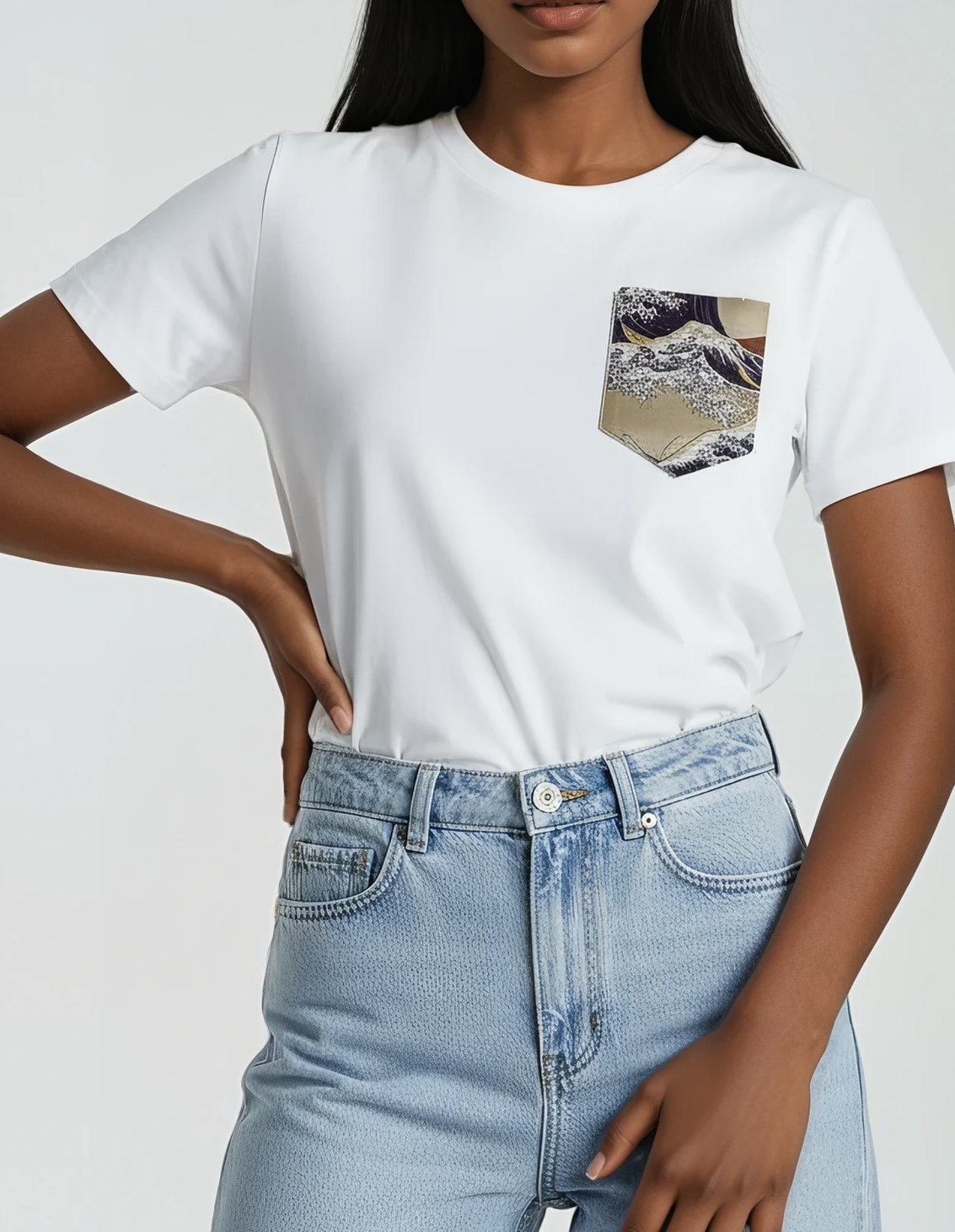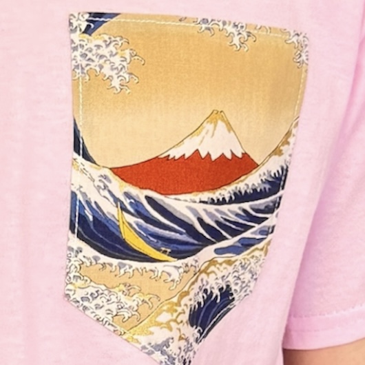 T-shirt confortable avec un design Hokusai et un faux poche sur la poitrine. Confectionné à partir de tissu japonais et cousu à la main localement, chaque pièce est personnalisée pour un style unique et raffiné. Parfait pour les amateurs d’art et de pièces originales