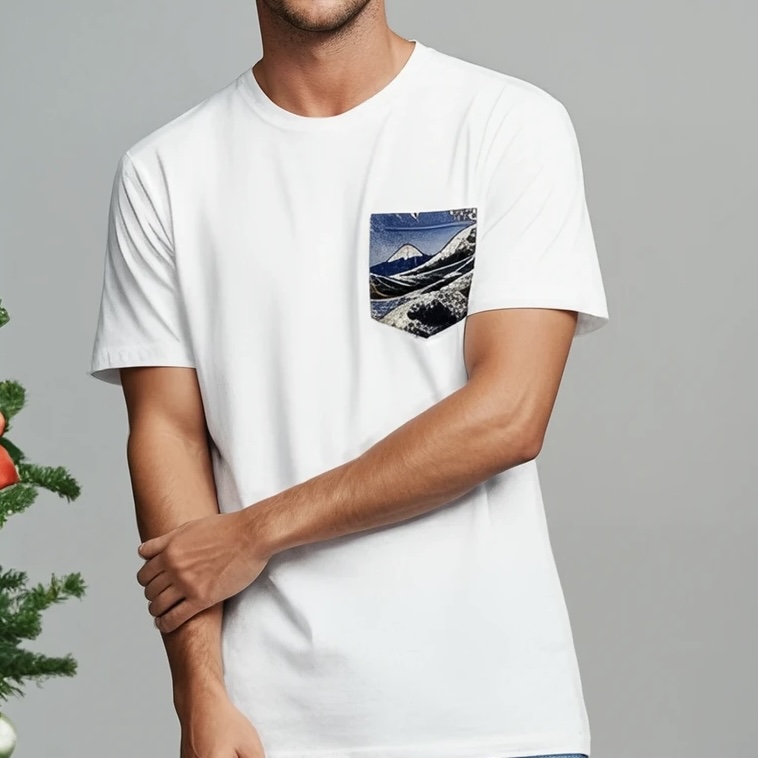 T-shirt confortable avec un design Hokusai et un faux poche sur la poitrine. Confectionné à partir de tissu japonais et cousu à la main localement, chaque pièce est personnalisée pour un style unique et raffiné. Parfait pour les amateurs d’art et de pièces originales