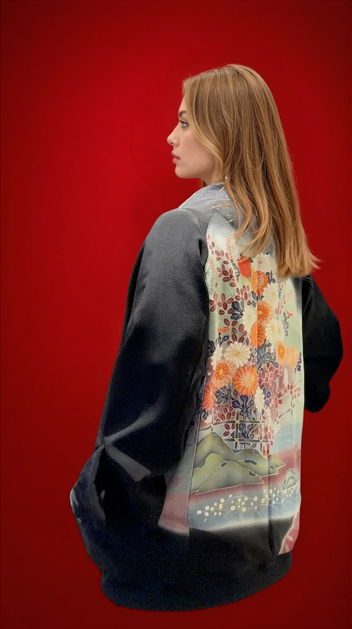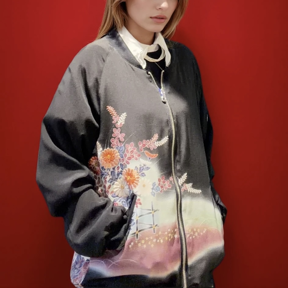 Recyclé à partir d’un kimono kurotome traditionnel utlisé lors des cérémonies ,